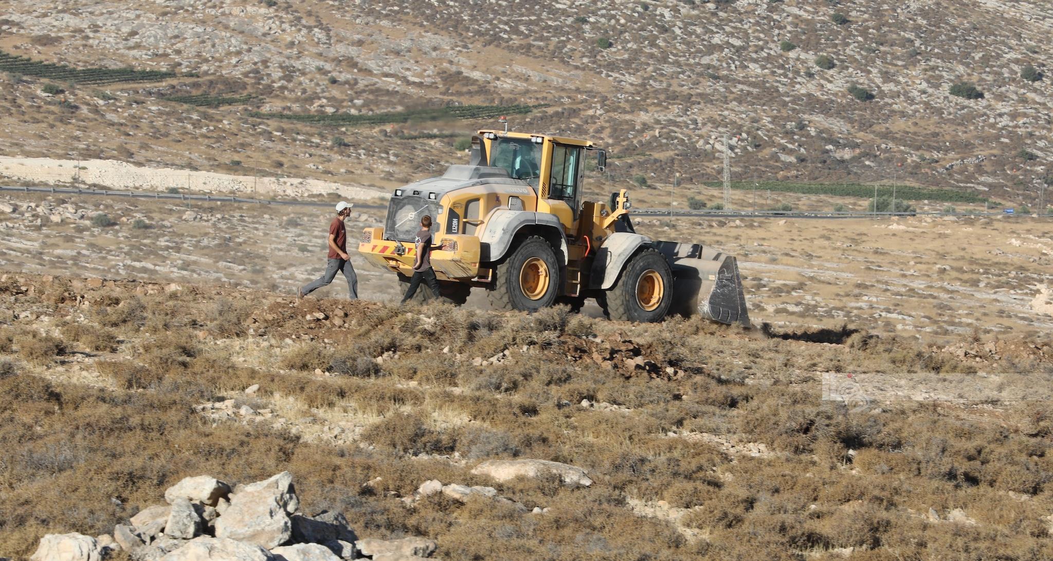مستوطنون يجرفون أراضي ويقتلعون أشجار زيتون في أراضي اللبن الشرقية جنوب نابلس