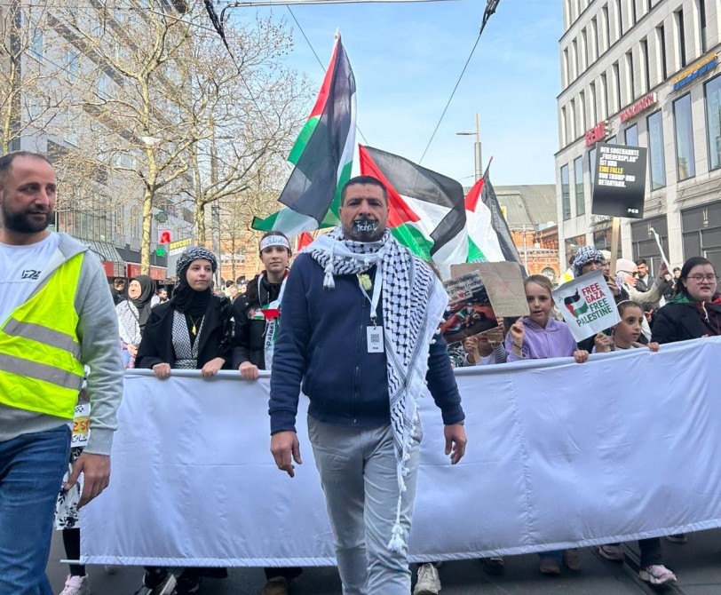 ورفع المشاركون الأعلام الفلسطينية، وارتدوا الكوفية الفلسطينية، تعبيرًا عن تمسكهم بالهوية الوطنية ودعمهم لصمود الشعب الفلسطيني. وردد المحتجون هتافات تطالب بالحرية لقطاع غزة، ووقف الحرب، وإنهاء ما وصفوه بجرائم الاحتلال الإسرائيلي بحق المدنيين.